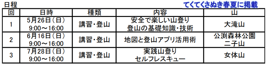 (高松勤労者山の会、さぬき山歩会、高松ハイキングクラブ)