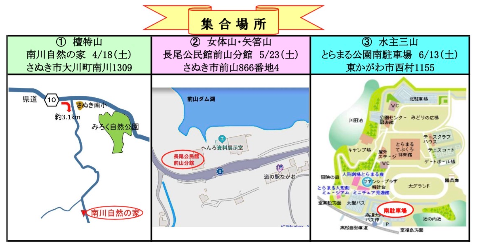 (高松勤労者山の会、さぬき山歩会、高松ハイキングクラブ)